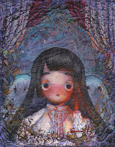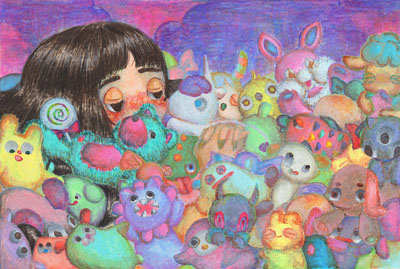 主にアクリル絵の具で制作しており、表情、色使いにこだわりを持ち自分だけの世界観を追求しています。